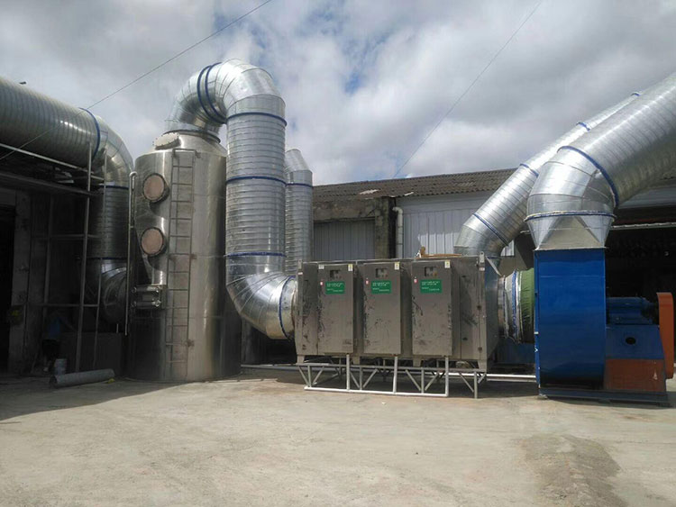UV光解設備是利用特制的高能高臭氧UV紫外線光束照射廢氣,裂解工業(yè)廢氣如:氨、三甲胺、硫化氫、甲硫氫、甲硫醇、甲硫醚、乙酸丁酯、乙酸乙酯、二甲二硫、二硫化碳和苯乙烯,硫化物H2S、VOC類,苯、甲苯、二甲苯的分子鏈結構,使有機或無機高分子惡臭化合物分子鏈,在高能紫外線光束照射下,降解轉變成低分子化合物,如CO2、H2O等。利用高能高臭氧UV紫外線光束分解空氣中的氧分子產生游離氧,即活性氧,因游離氧所攜正負電子不平衡所以需與氧分子結合,進而產生臭氧。 UV+O2→O-+O*(活性氧)O+O2→O3(臭氧),眾所周知臭氧對有機物具有的氧化作用,對工業(yè)廢氣及其它刺激性異味有立竿見影的清除效果。工業(yè)廢氣利用排風設備輸入到本凈化設備后,凈化設備運用高能UV紫外線光束及臭氧對工業(yè)廢氣進行協(xié)同分解氧化反應,使工業(yè)廢氣物質其降解轉化成低分子化合物、水和二氧化碳,再通過排風管道排出室外。利用高能UV光束裂解工業(yè)廢氣中細菌的分子鍵,破壞細菌的核酸(DNA),再通過臭氧進行氧化反應,達到凈化及殺滅細菌的目的.從凈化空氣效率考慮,我們選擇了-C波段紫外線和臭氧發(fā)結合電暈電流較高化裝置采用脈沖電暈放吸附技術相結合的原理對有害氣體進行消除,其中-C波段紫外線主要用來去除硫化氫、氨、苯、甲苯、二甲苯、甲醛、乙酸乙酯、乙烷、丙酮、尿烷、樹脂、等氣體的分解和裂變,是有機物變?yōu)闊o機化合物。 凈化裝置由初濾單元、-C波段紫外線裝置,降解收集,臭氧發(fā)生器及過濾單元等設備和部件組成。
