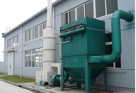 工作時,含塵氣體由車間除塵設備的進風道進入灰斗,粗塵粒直接落入灰斗底部,細塵粒隨氣流轉折向上進入中、下箱體,粉塵積附在濾袋外表面,過濾后的氣體進入上箱體至凈氣集合管-排風道,經排風機排至大氣。清灰過程是先切斷該室的凈氣出口風道,使該室的布袋處于無氣流通過的狀態(tài)(分室停風清灰),然后開啟脈沖閥用壓縮空氣進行脈沖噴吹清灰,切斷閥關閉時間足以保證在噴吹后從濾袋上剝離的粉塵沉降至灰斗,避免了粉塵在脫離濾袋表面后又隨氣流附集到相鄰濾袋表面的現(xiàn)象,使濾袋清灰徹底,并由可編程序控制儀對排氣閥、脈沖閥及卸灰閥等進行全自動控制,由此使積附在濾袋上的粉塵周期地脈沖噴吹清灰,使凈化氣體正常通過,保證除塵系統(tǒng)運行。當含塵氣體由進風口進入,經過灰斗時,氣體中部分大顆粒粉塵受慣性力和重力作用被分離出來,直接落入灰斗底部。含塵氣體通過灰斗后進入中箱體的濾袋過濾區(qū),氣體穿過濾袋,粉塵被阻留在濾袋外表面,凈化后的氣體經濾袋口進入上箱體后,再由出風口排出。另外,隨著時間的增加而積附在濾袋上的粉塵越來越多,增加濾袋阻力,致使處理風量逐漸減少,為正常工作,一定要控制阻力在一定范圍內(140--170毫米水柱)。